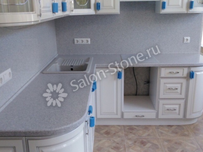 Угловая столешница серого оттенка с белыми крапинками